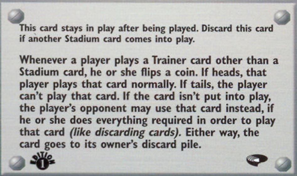 “Discard this card if another Stadium card is comes into play.”