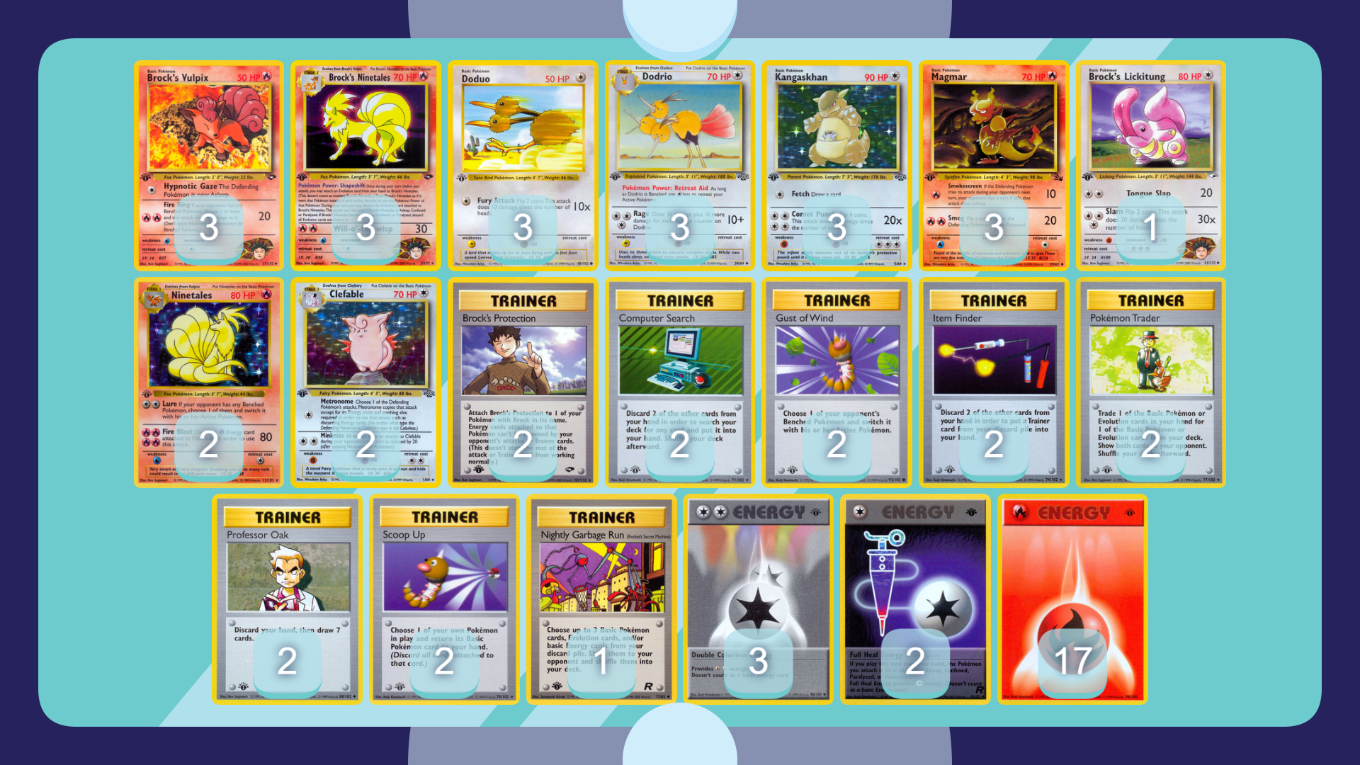 Due to the Brock’s Ninetales losing Shapeshifted Evolutions to status effects, this deck falls apart in many situations. It can fight well against Slowpoke Stall, but Wigglytuff decks are very difficult to beat. I may explore Dark Dragon varieties of this deck.