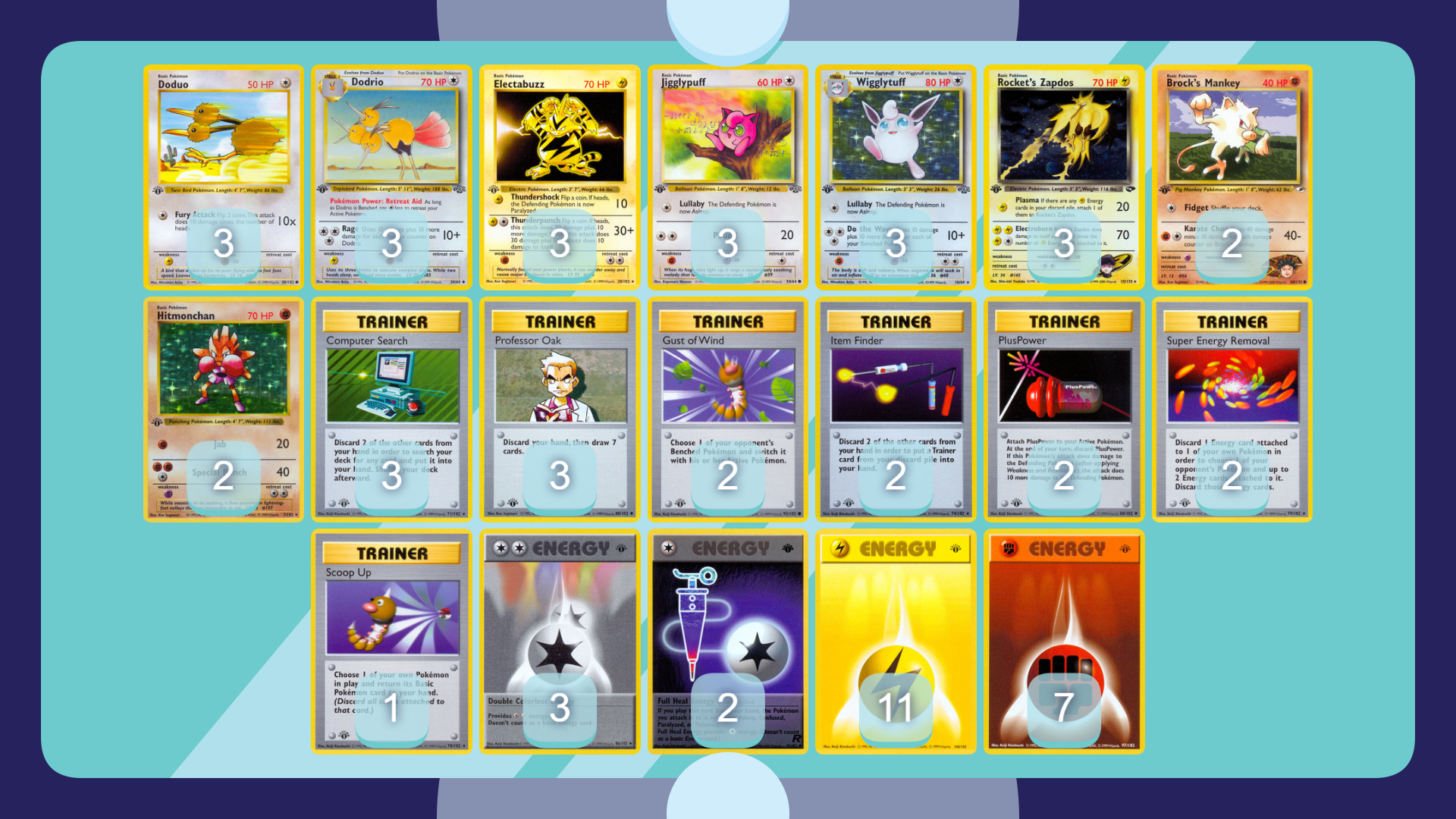 - Resiliency – Somewhat Resilient – The deck can have difficulty against decks that easily KO Electabuzz and Rocket’s Zapdos.
