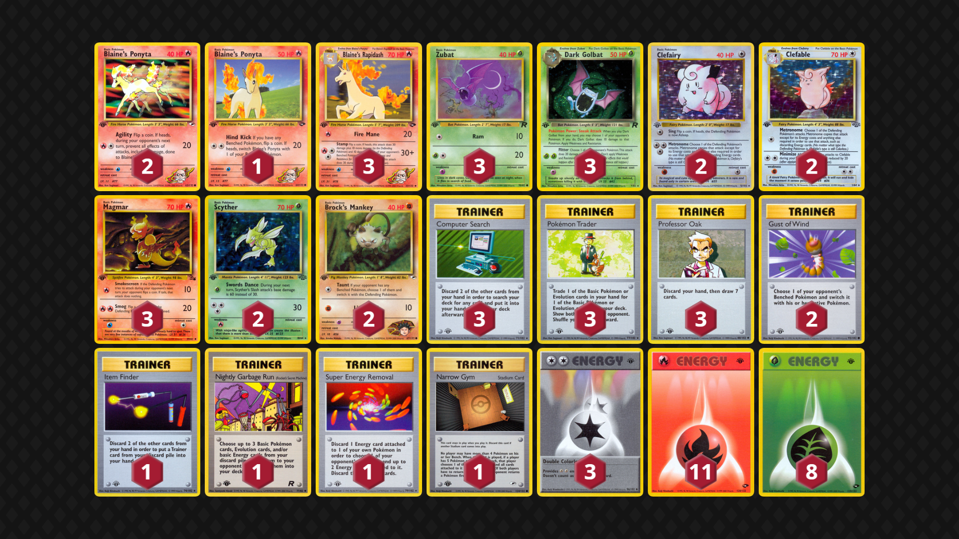Grass-Fire Dark Golbat Blaine’s Rapidash Clefable
