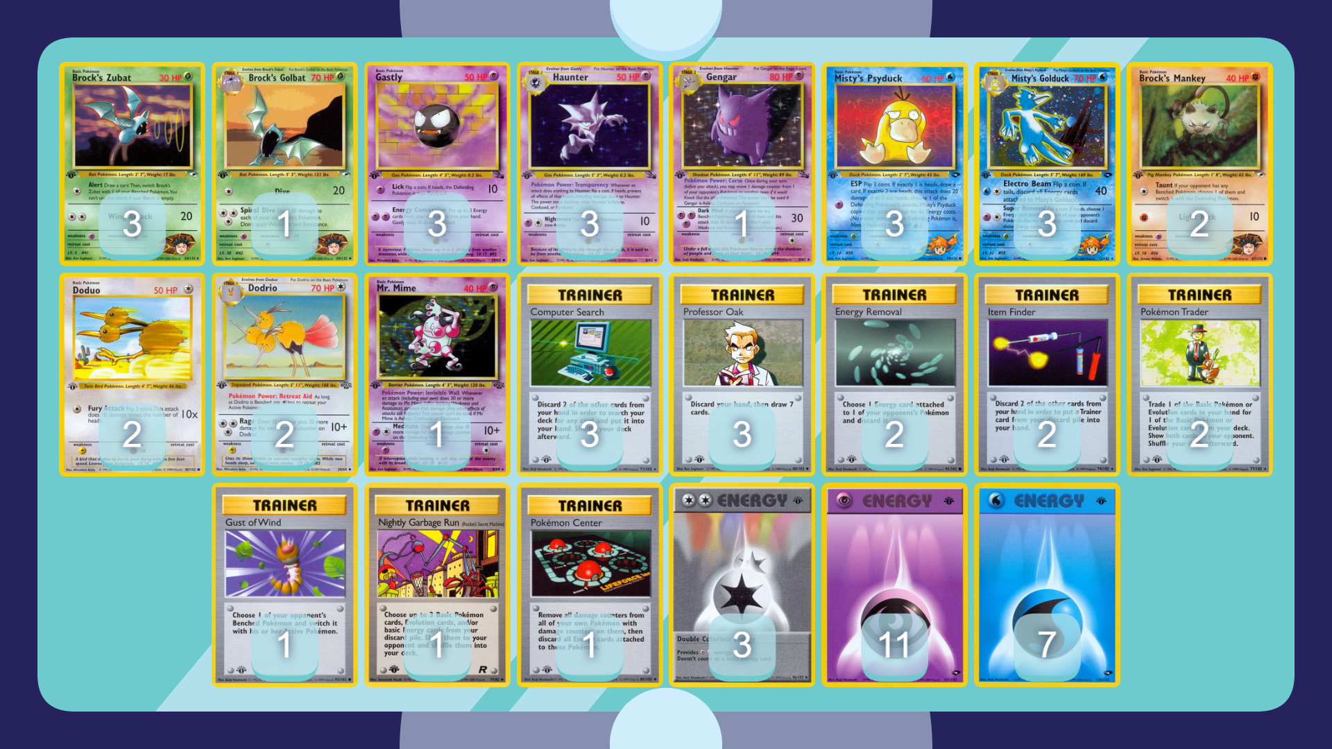 - Psychic-Water Misty’s Golduck Brock’s Golbat Gengar Dodrio