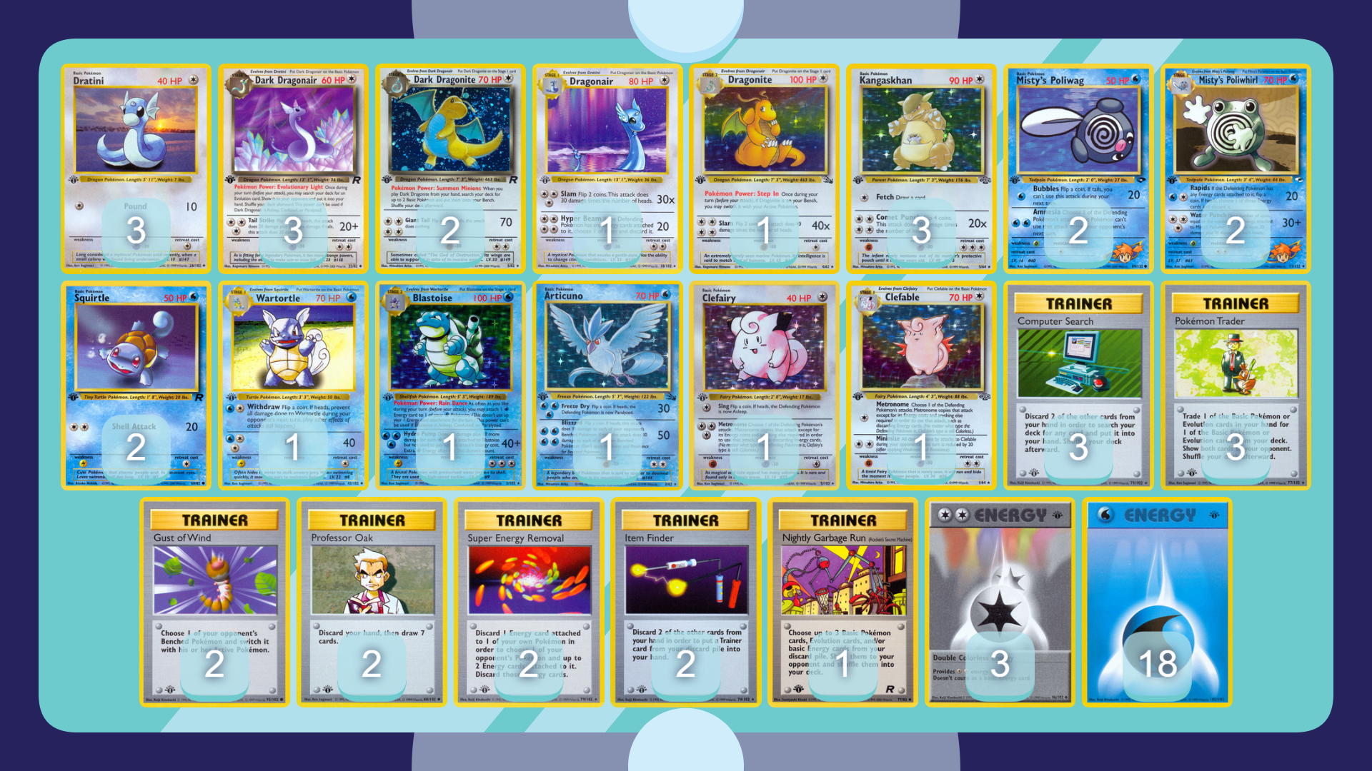 -3 Ditto, -1 Fossil Articuno, -1 Blastoise, -1 Wartortle, -2 Computer Error, -2 Scoop Up, -2 Full Heal Energy.