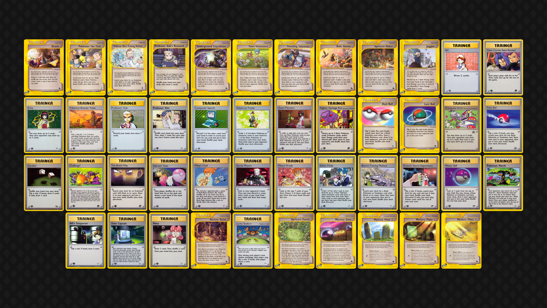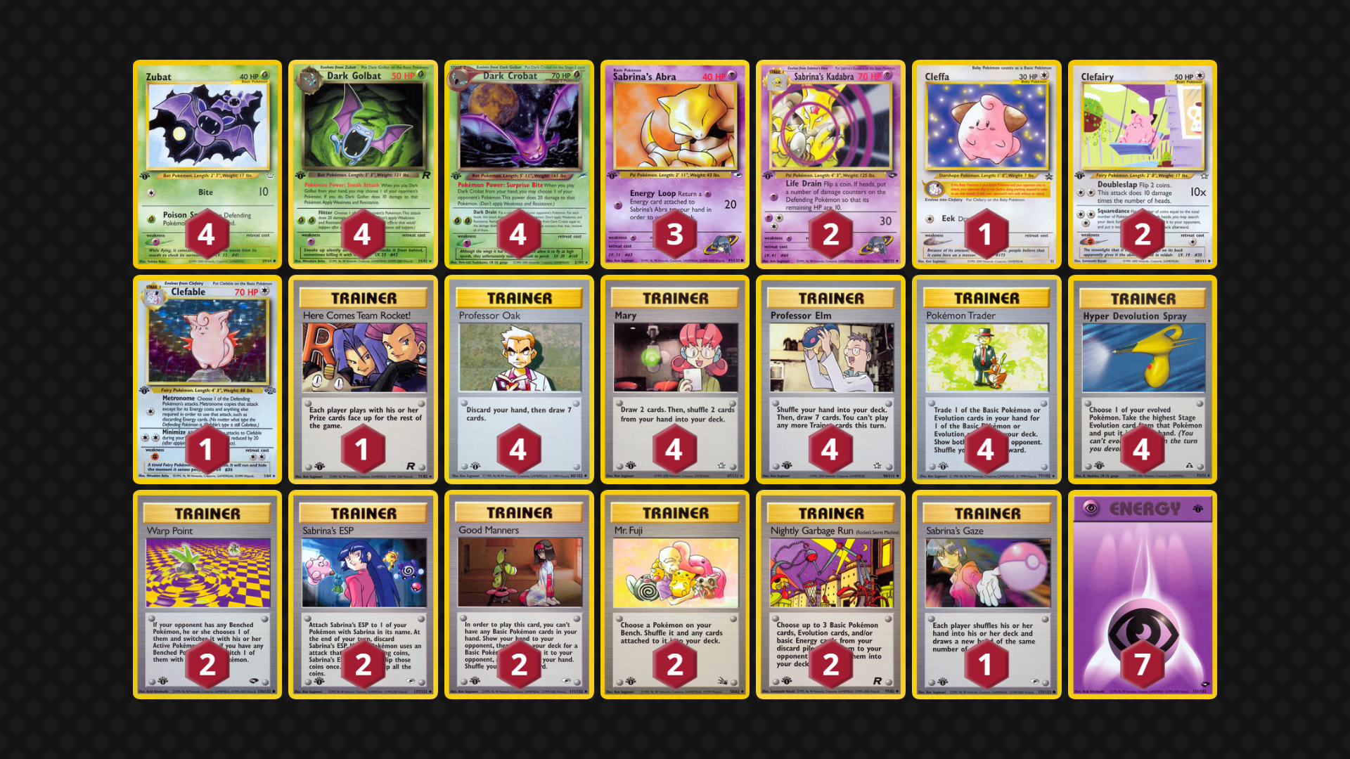 Regarding the banned list, the “Baby Rule” from Neo was quite frustrating in early games, and Chaos Gym was tough to answer with many decks only wanting to play a few Stadiums. It is possible that Fossil Aerodactyl and/or Dark Vileplume (and other cards not identified) are banned as more games of the format are played, but we hope to keep the ban list very small!