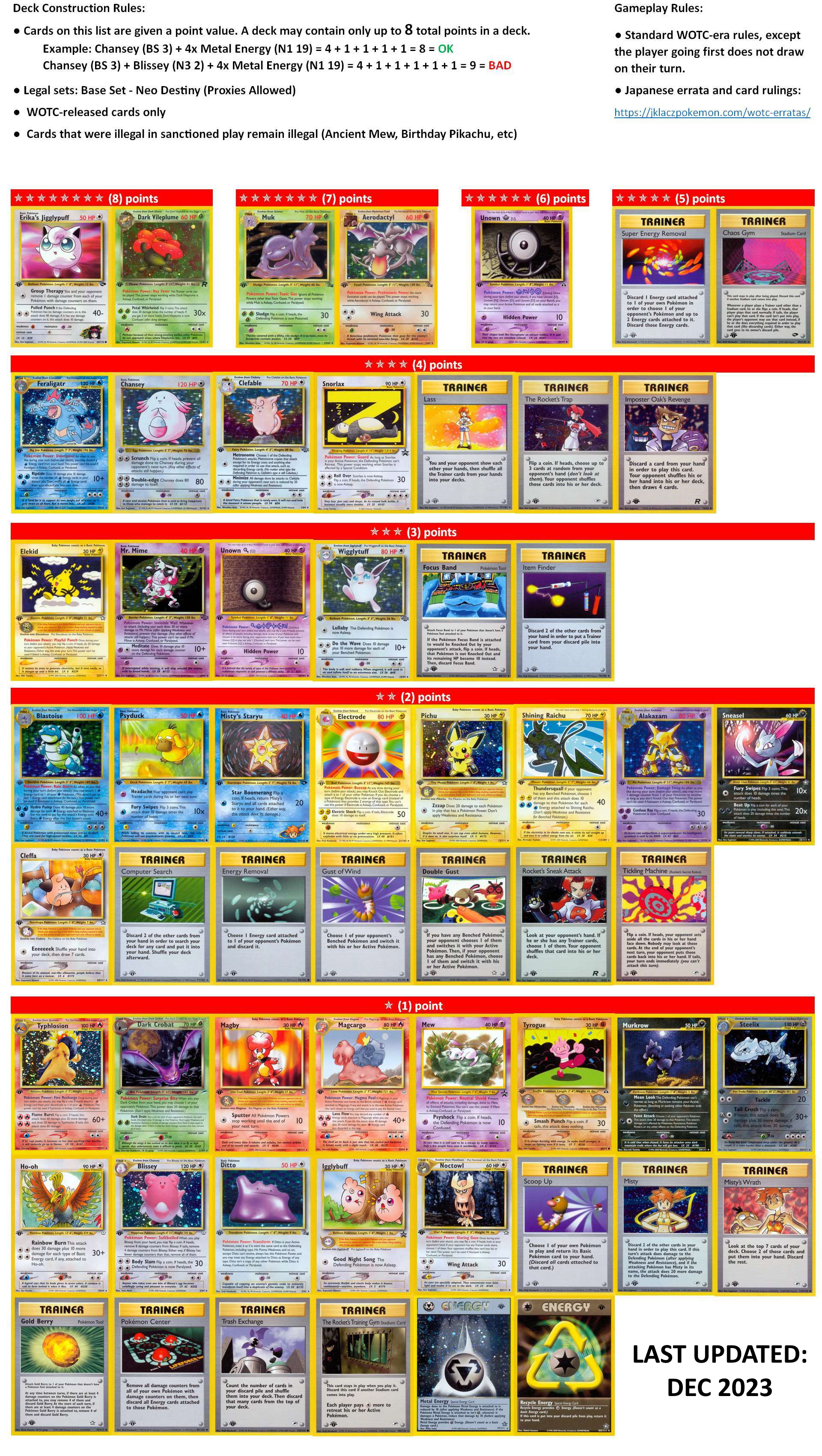 - Cards from Base Set through Skyridge (including Best of Promos and Wizards Black Star Promos) are legal.