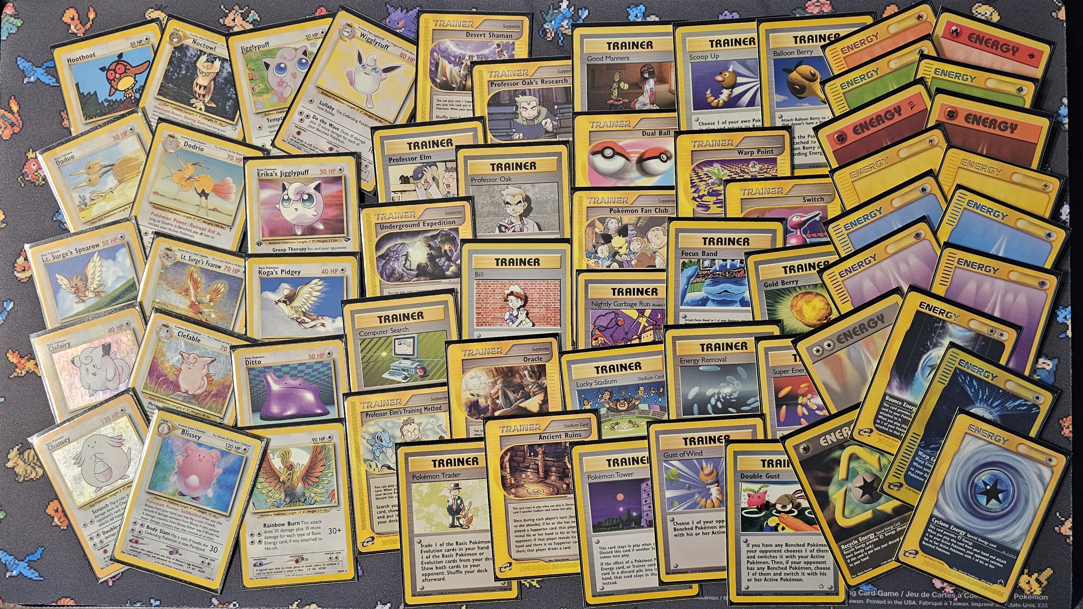 This deck looks to its powerful Stage1s, as well as a few Basics, to achieve knock-outs: Wigglytuff, Clefable, Blissey, Erika’s Jigglypuff and Ho-oh. The deck plays 3 Stadiums to remove Resistance Gym/Sprout Tower and is not playing Item finder, Town Volunteers and other powerful Trainers to leverage Ancient Ruins and Pokemon Tower.