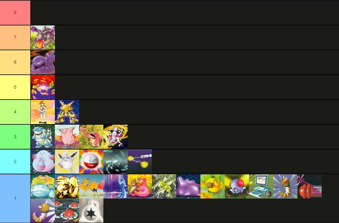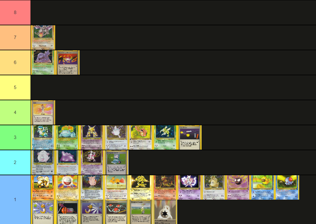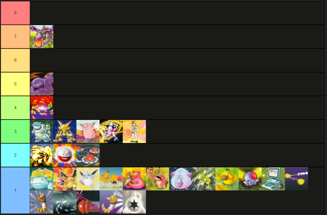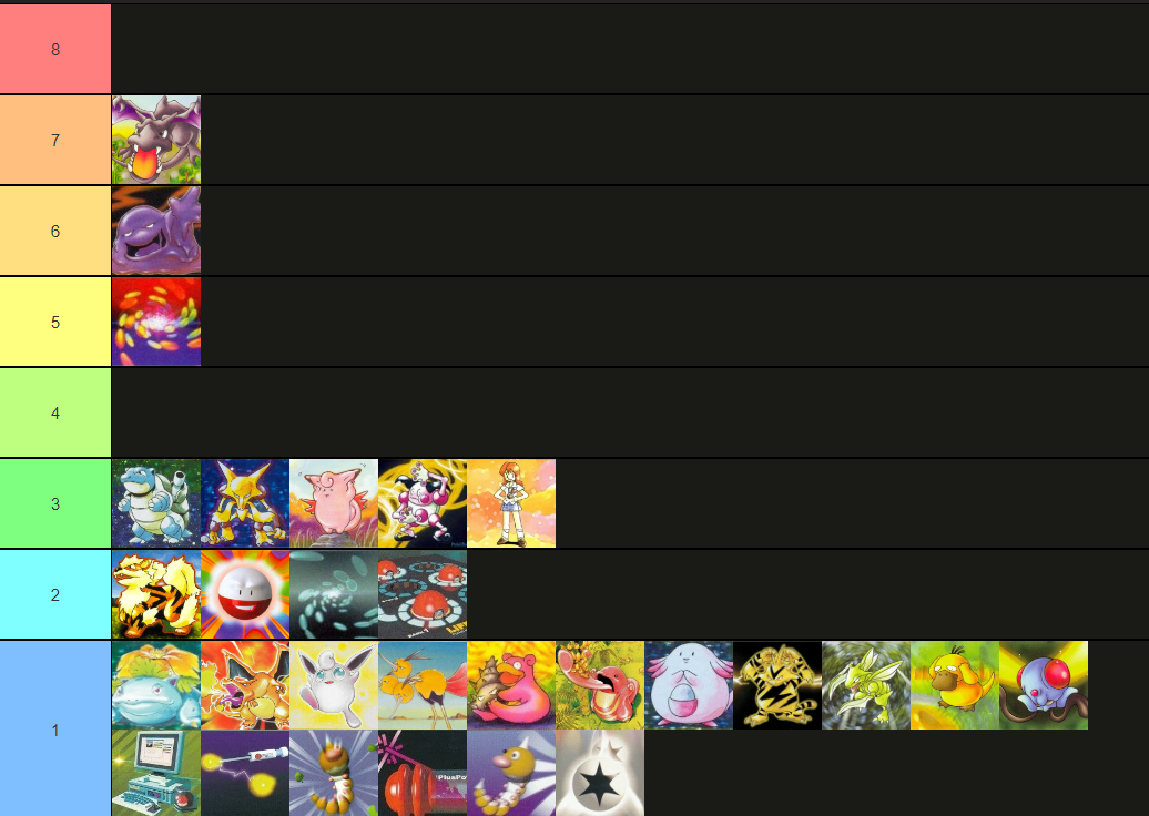 something i think that will help PB balancing discussions, is more talking about what we want the list to promote/inhibit. if we can agree on general concepts like that, deciding which cards should be what points should come fairly simply. so far i’m pretty sure we all want stage 2 decks to be viable and reduce “degeneracy” like aero/muk, mewtwo stall, lickitung stall, etc from there it’s how nerfed do we want regular BF type decks like rain, venu, arcanine, etc