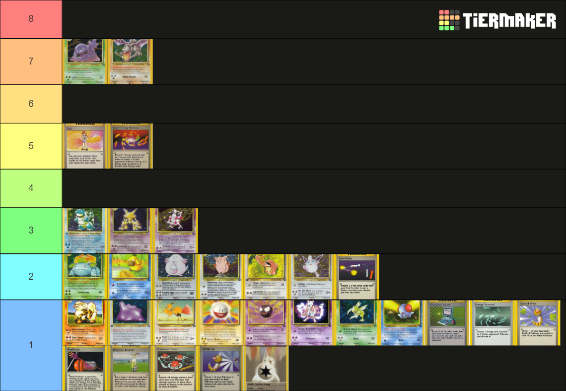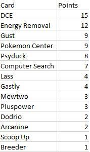 • 13 cards decreased (and Gastly, Promo Mewtwo, Kangaskhan, Ditto and Pokemon Breeder going to 0 pts)