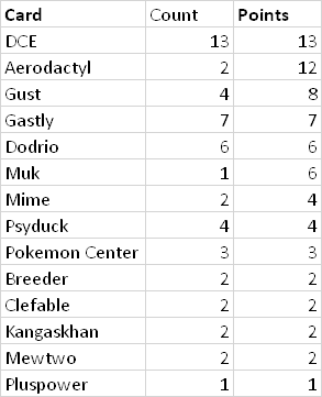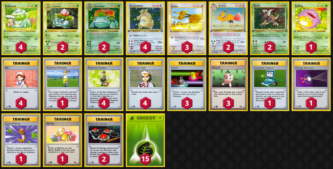• Points: 2x Venusaur (2 pts), 2x Dodrio (2 pts), 1x Computer Search (1 pts), 1x Gust of Wind (1 pts), 2x Pokemon Center (2 pts)