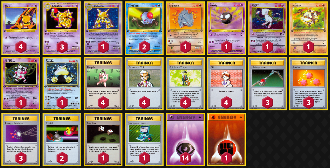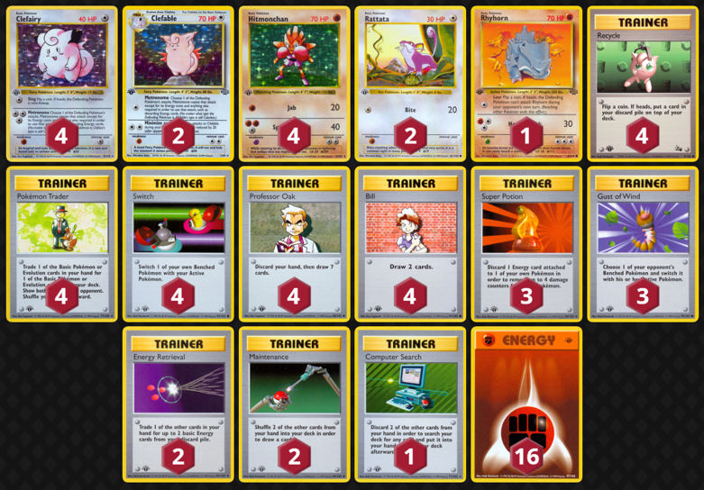 After getting the itch to play WotC-era Pokemon TCG and reading Jason Klaczynski’s blog, I fell down the rabbit hole of (Base-Gym) Prop 15/3. (Note: Jason’s blog is mandatory reading before proceeding!) I’ve been playing for about 9 months at the point of writing the following musings (mostly on webcam and on TCGOne Career mode) and believe that I have a sense of the most competitive decks. It’s my intent to explore through this blog how a competitive, mass-adopted Prop 15/3 metagame may have developed given enough time (and share those findings for any others interested in trying the format)!